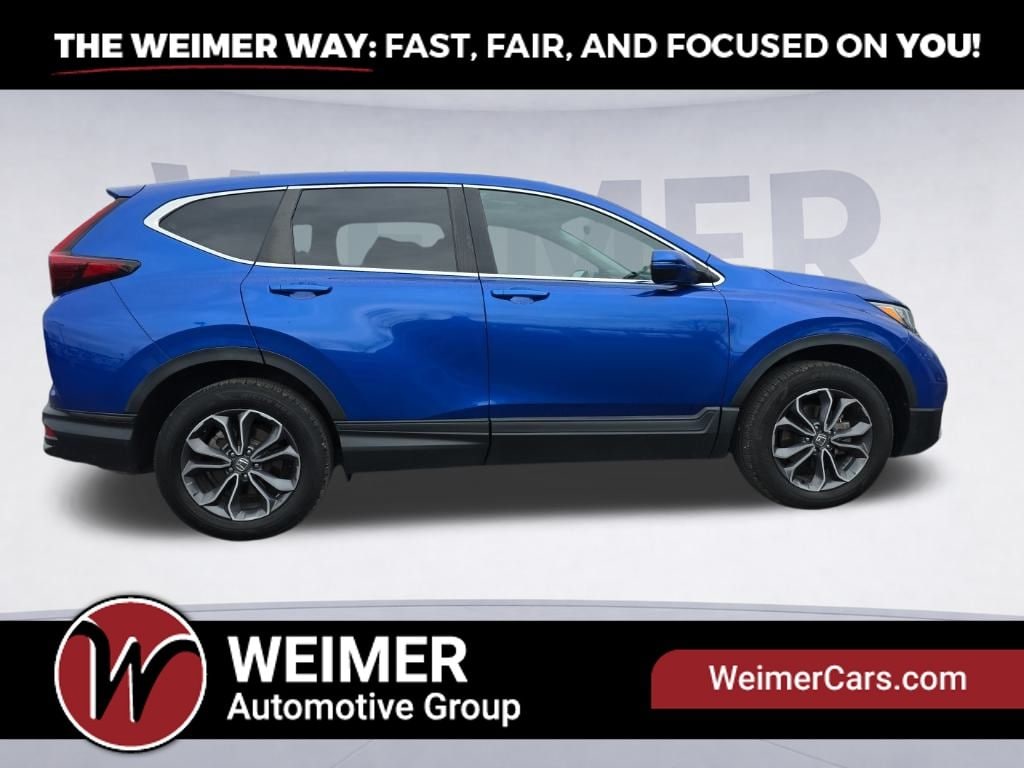 Experience the epitome of style, comfort, and versatility with this stunning 2021 Honda CR-V EX-L. This meticulously maintained SUV boasts a sleek blue exterior, complemented by a spacious and well-appointed interior that will captivate your senses.